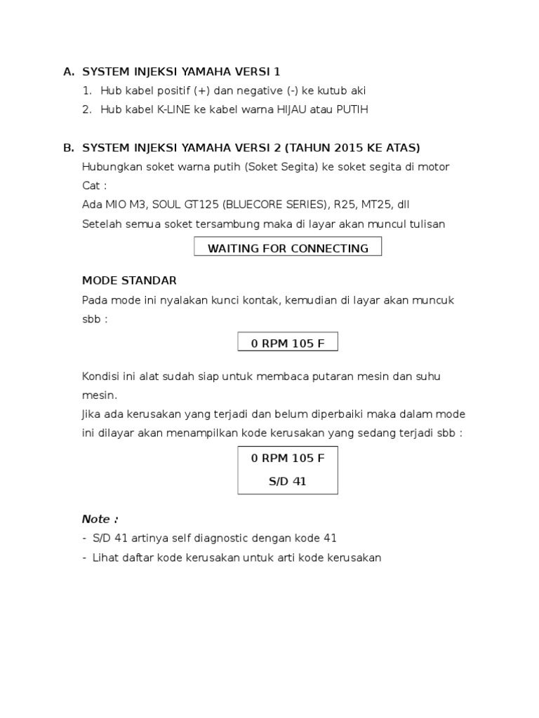 Kode kerusakan injeksi yamaha. Lampu check engine menyala selama 1 detik on dan 15 detik mati off. Mekanik onlen kode kedipan kerusakan mesin motor injeksi mil pada sepeda motor injeksi memang jika terjadi kerusakan pada komponen sensor sensornya maka akan ada lampu pemberitahuan atau itempropurlbaca selengkapnyaa. Pada motor dengan sistem injeksi selalu ada kode kode tertentu bila terjadi kerusakan.