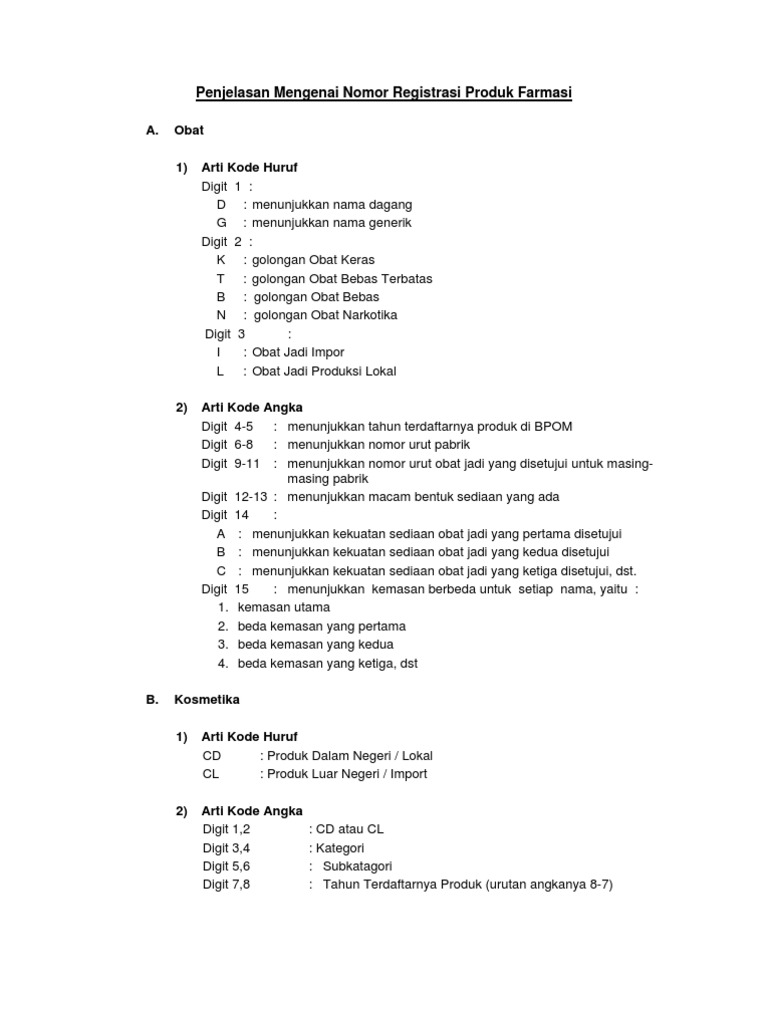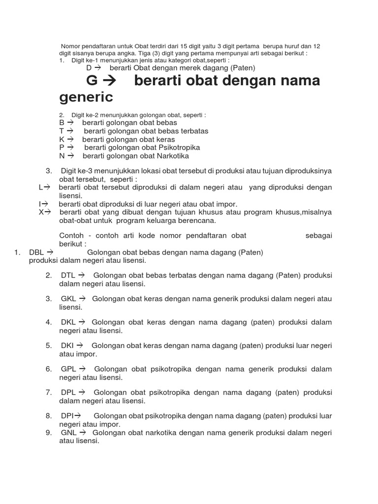 Obat ini sama denga narkoba yang kita kenal dapat menimbulkan ketagihan. Kode nomor pendaftaran registrasi obat alat kesehatan pkrt makanan dan minuman undang undang keshatan farmasi kode nomor pendaftaran obat nomor pendaftaran untuk obat terdiri dari 15 digit pertama berupa huruf dan 12 digit sisanya berupa angka. Sama halnya dengan obat bebas obat bebas terbatas dapat pula disebut obat otc over the counter yakni merupakan obat yang sebenarnya termasuk obat keras namun dalam jumlah tertentu masih dapat dijual di apotek dan dapat anda beli tanpa resep dari dokter.