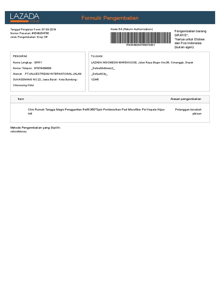 Lazada Formulir Pengembalian Barang