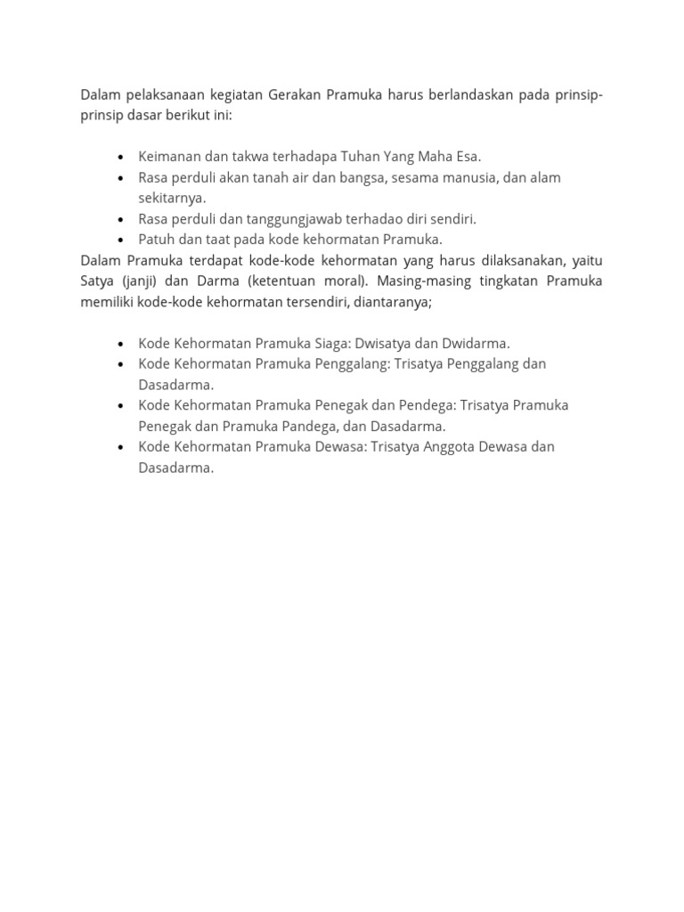 Home atribut teori dasar kode kehormatan pramuka siaga penggalang dan penegak salam pramuka. Adapun isi dari trisatya yaitu. Trisatya terdiri dari tiga butir janji sedangkan dasadarma memuat 10 butir sikap yang kesemuanya wajib ditepati dan dipraktekkan dalam kehidupan sehari.