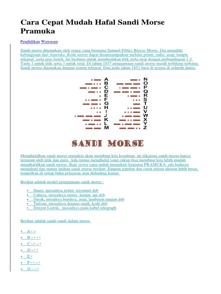 Cara Cepat Mudah Hafal Sandi Morse Pramuka Pdf