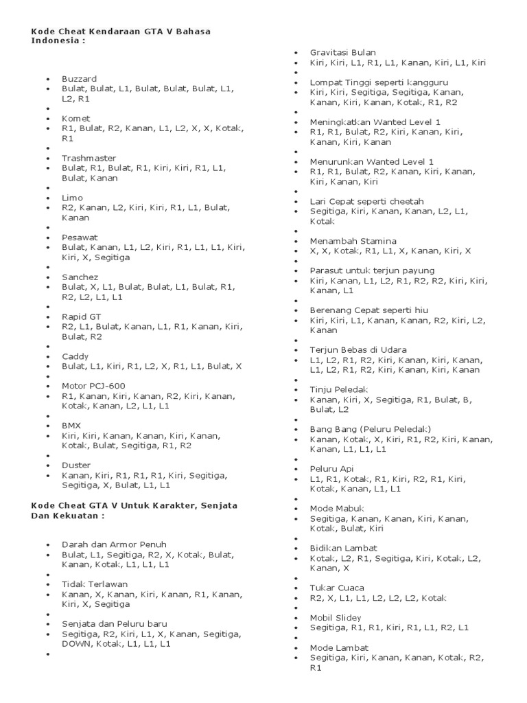 Kode Cheat Kendaraan Gta V Bahasa Indonesia